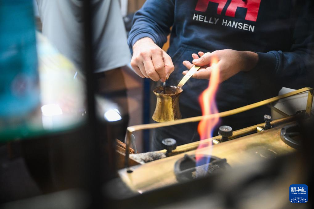 探訪土耳其咖啡制作技藝 12月5日,在土耳其伊斯坦布爾一家咖啡館內(nèi),一名工作人員制作土耳其咖啡。 土耳其咖啡歷史悠久,2013年土耳其咖啡文化和傳統(tǒng)被列入聯(lián)合國教科文組織人類非物質(zhì)文化遺產(chǎn)名錄。與其他咖啡不同,土耳其咖啡是由特別細(xì)的咖啡粉末沖煮而成,一杯未經(jīng)過濾的土耳其咖啡中會有一些沉淀物。在飲用土耳其咖啡時,當(dāng)?shù)厝送ǔ钆湟槐鸵恍┨鹌贰?/p> 新華社記者 劉磊 攝