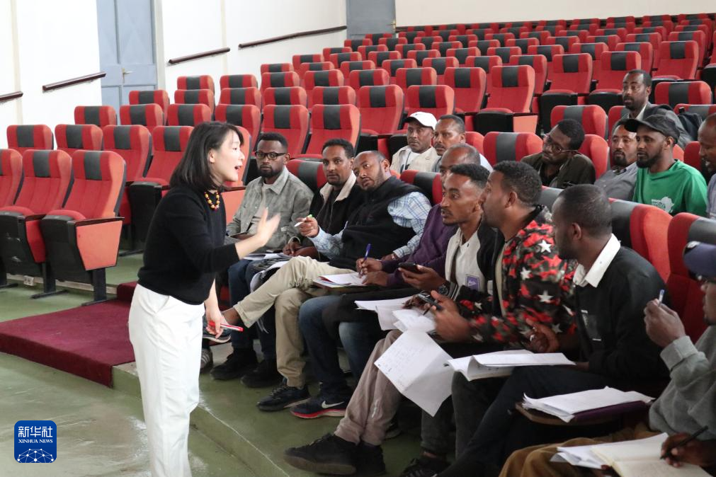 埃塞導(dǎo)游學(xué)中文 期待迎接更多中國游客 12月2日,在埃塞俄比亞亞的斯亞貝巴大學(xué),孔子學(xué)院老師宋瑞榮(左)在教室授課。 新華社記者 劉方強(qiáng) 攝
