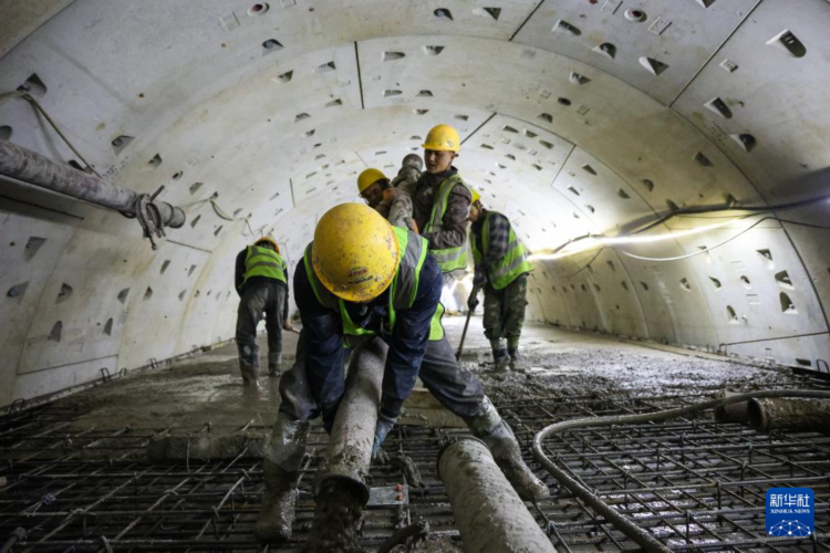 12月23日,中鐵二十局施工人員在深圳地鐵16號線共建管廊內進行最后一段分倉中板混凝土澆筑。
