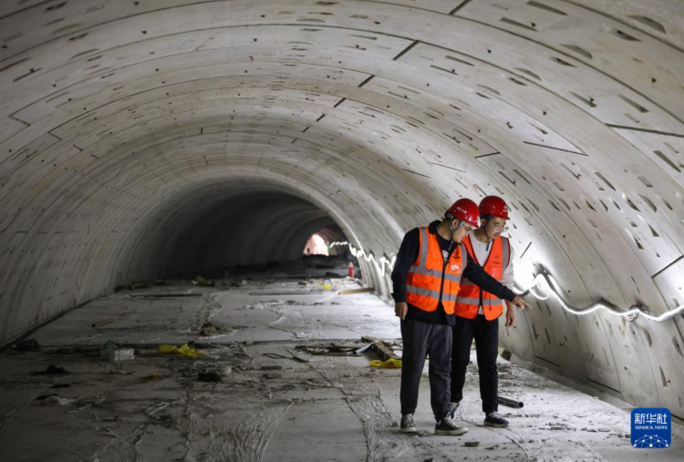 12月23日,中鐵二十局管理人員在深圳地鐵16號線共建管廊內檢查分倉中板養護情況。