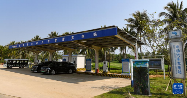 這是3月25日拍攝的博鰲零碳示范區內的電動汽車充電站。