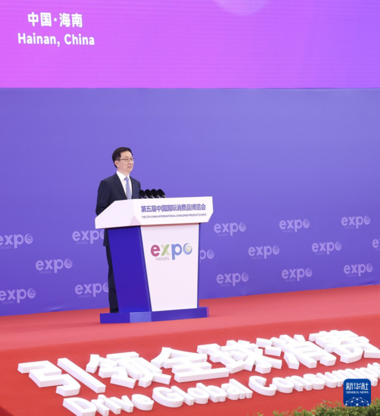 當日上午,韓正和有關國家領導人、國際組織負責人共同出席啟動儀式。10時40分許,韓正宣布第五屆中國國際消費品博覽會、“購在中國”系列活動啟動。