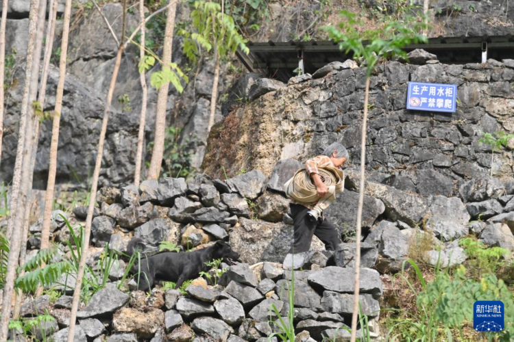 4月21日,在廣西馬山縣里當瑤族鄉(xiāng)北屏村,送水人員給村民送水。