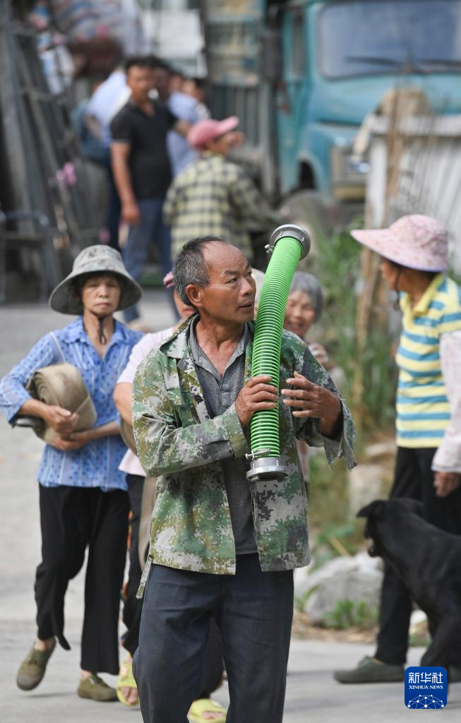 4月21日,廣西馬山縣金釵鎮(zhèn)龍印村村民在搬運水管,準備將當?shù)卣蛠淼乃M水柜。