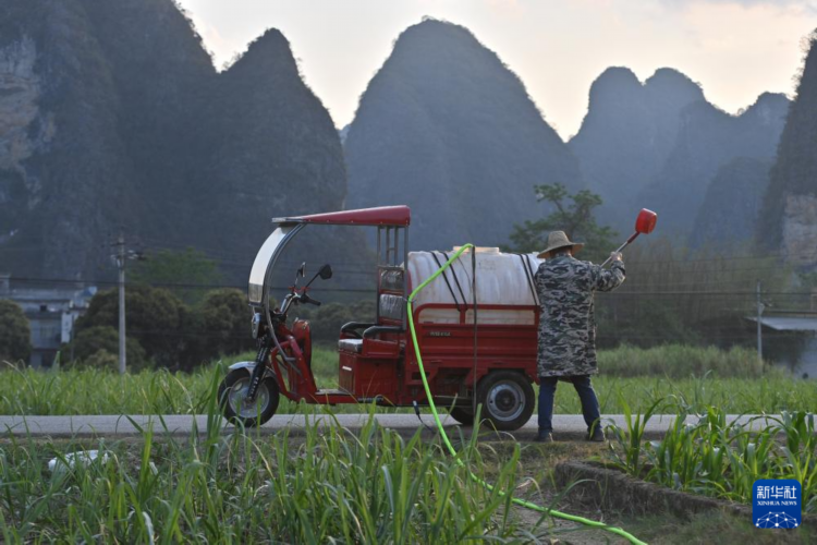4月21日,廣西都安瑤族自治縣地蘇鎮(zhèn)上節(jié)村村民在給玉米澆水。