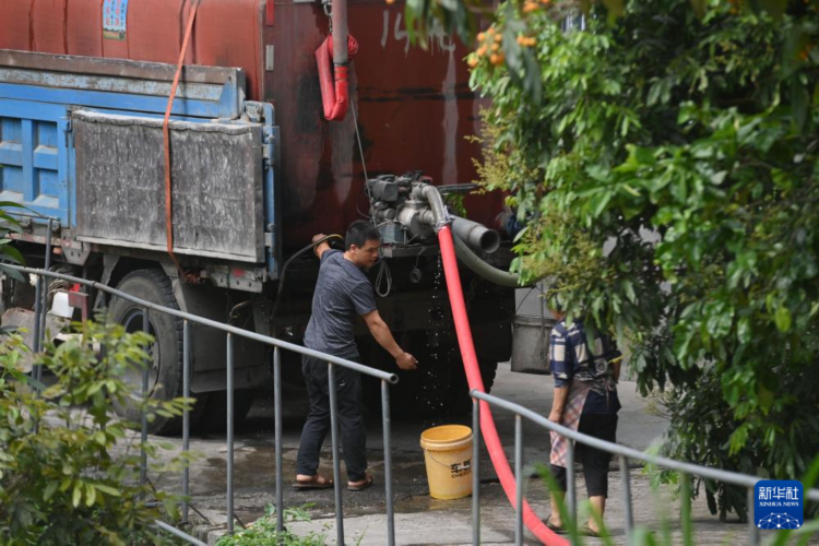 4月21日,在廣西馬山縣里當瑤族鄉北屏村,送水人員給村民送水。