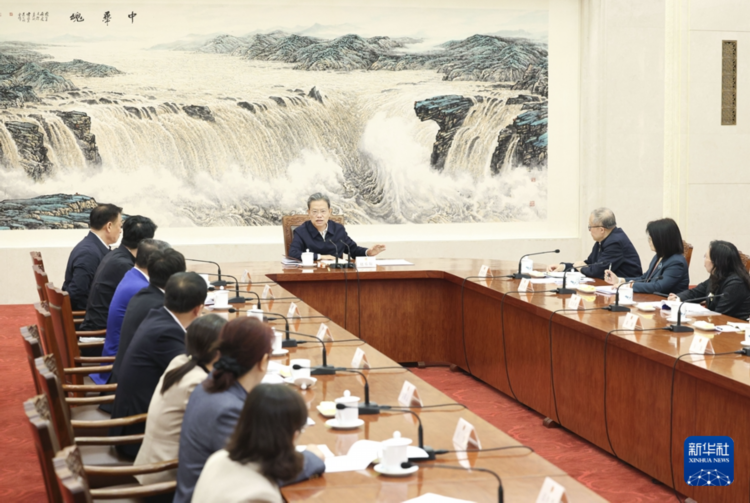 4月29日下午,中共中央政治局常委、全國人大常委會委員長趙樂際同列席十四屆全國人大常委會第十五次會議的全國人大代表座談交流。新華社記者 龐興雷 攝