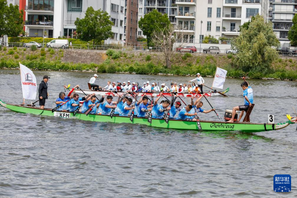5月24日,人們在德國法蘭克福美因河上參加龍舟比賽。
