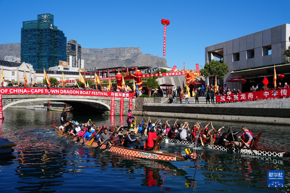 5月24日,人們在南非開普敦參加龍舟比賽。