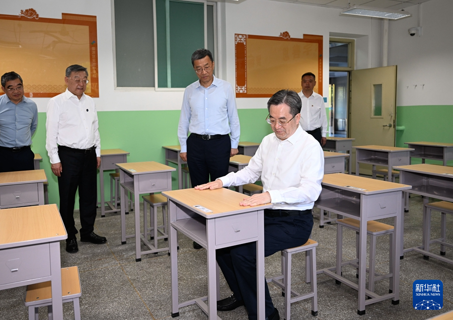 6月3日至4日,中共中央政治局常委、國務院副總理丁薛祥在山西調研高考組織保障和能源改革發展等工作。這是6月3日,丁薛祥在太原市晉源區實驗中學考點實地察看考務組織各環節工作情況。 新華社記者 申宏 攝