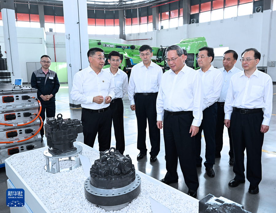 6月16日至18日,中共中央政治局常委、國務(wù)院總理李強(qiáng)在江蘇調(diào)研。這是6月16日,李強(qiáng)在徐州江蘇匯智高端工程機(jī)械創(chuàng)新中心有限公司,聽取實(shí)驗(yàn)項(xiàng)目等匯報(bào),察看核心零部件和產(chǎn)品。新華社記者 饒愛民 攝