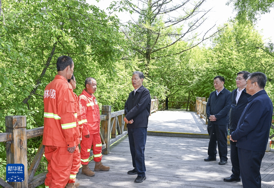 6月16日至19日,中共中央政治局常委、全國人大常委會委員長趙樂際在內蒙古調研。這是6月17日上午,趙樂際在興安盟阿爾山林區與護林員交流,檢查和了解森林法實施情況。新華社記者 張領 攝