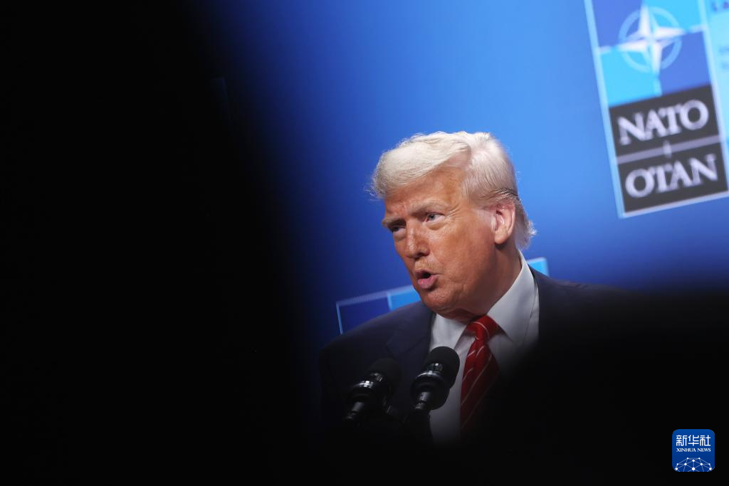 6月25日,在荷蘭海牙,美國總統特朗普在北約峰會后出席記者會。新華社記者 趙丁喆 攝