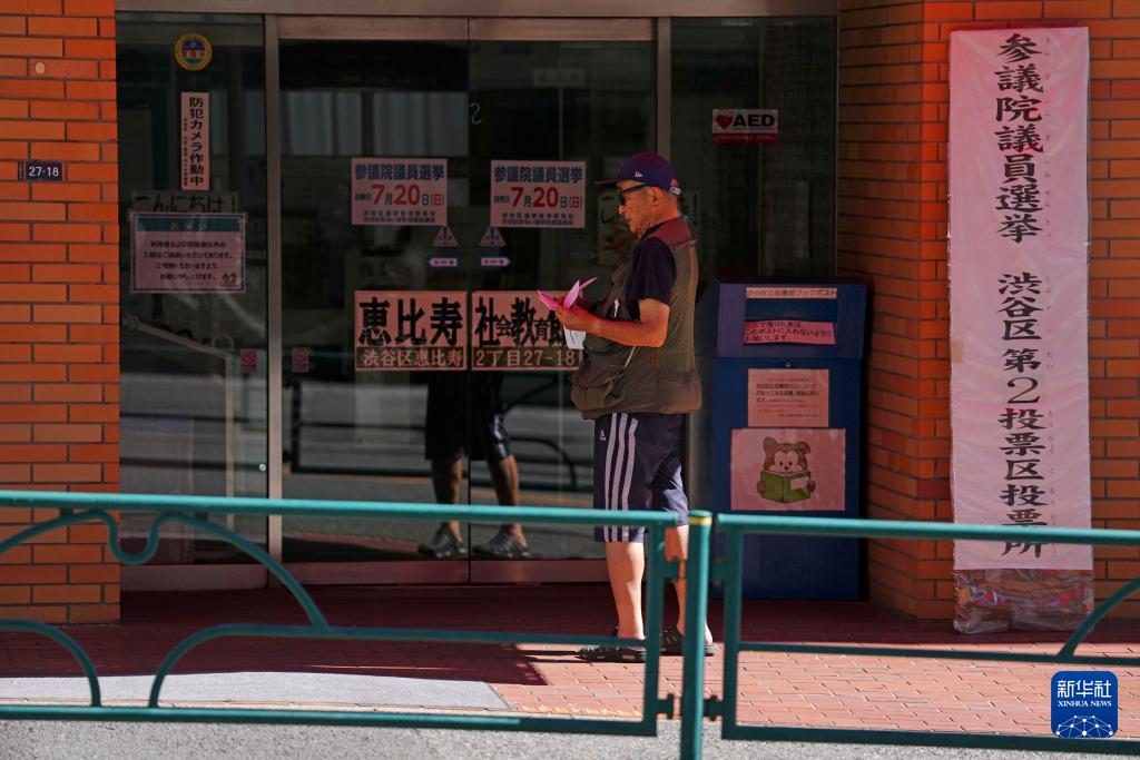 7月20日,一名男子準備進入日本東京的一處投票站參加投票。