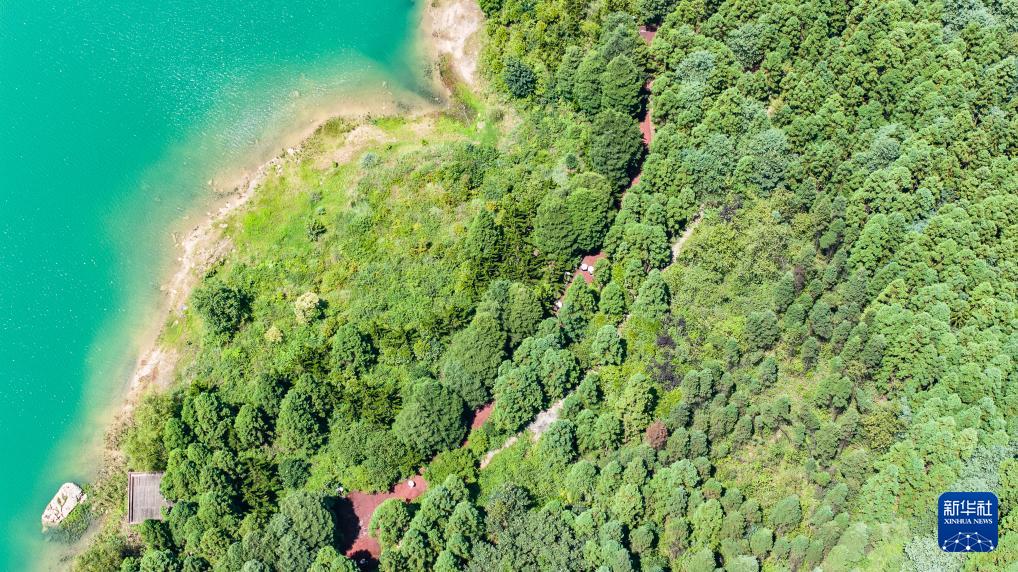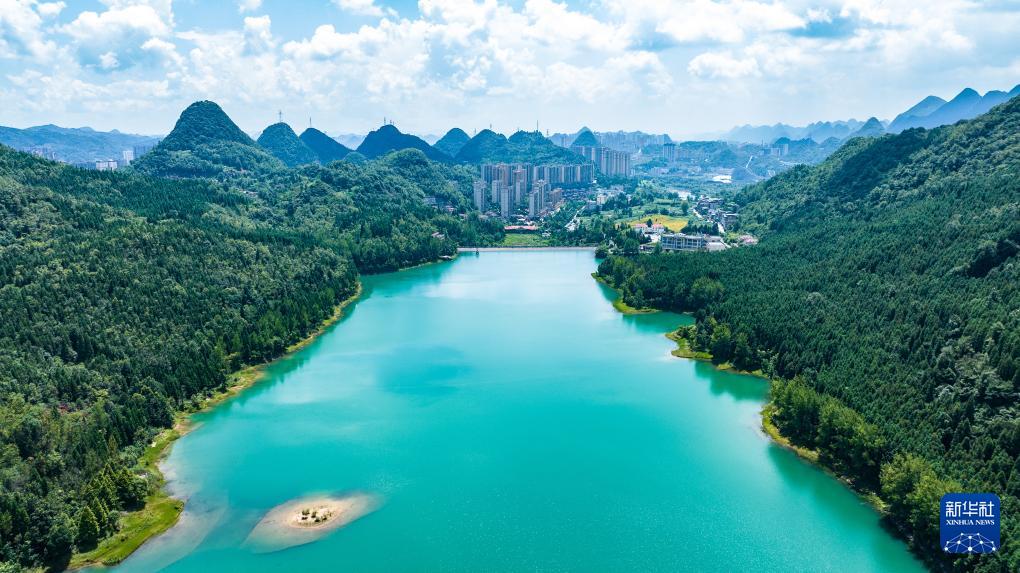 這是7月30日拍攝的六盤水市鐘山區瑤池公園風光(無人機照片)。