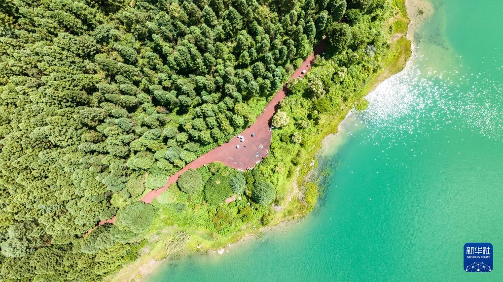 夏日時節,位于貴州省六盤水市鐘山區的瑤池公園草木蔥郁,湖水如碧,吸引眾多游客前來休閑游玩。