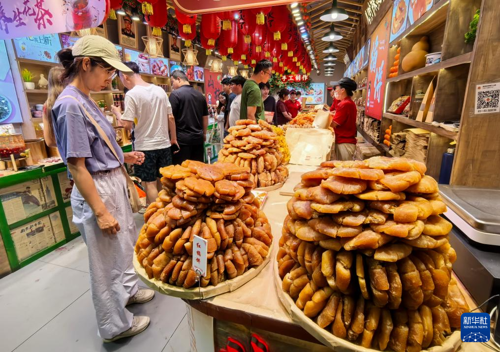 7月30日,游人在鼓樓大街一商店選購美食。
