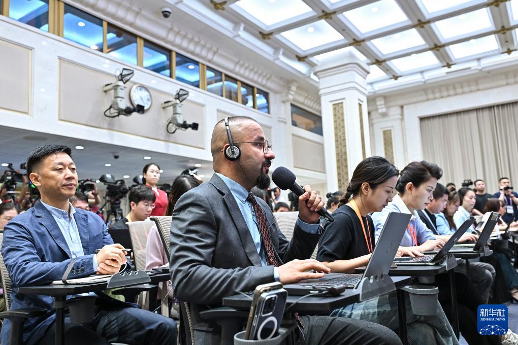 8月20日,國務院新聞辦公室在北京舉行新聞發布會,閱兵領導小組辦公室副主任、中央軍委聯合參謀部作戰局少將副局長吳澤棵,中國人民解放軍中部戰區閱兵指揮機構辦公室常務副主任、政治工作部少將副主任徐貴忠介紹閱兵準備工作有關情況,并答記者問。這是記者在現場提問。新華社記者 李鑫 攝