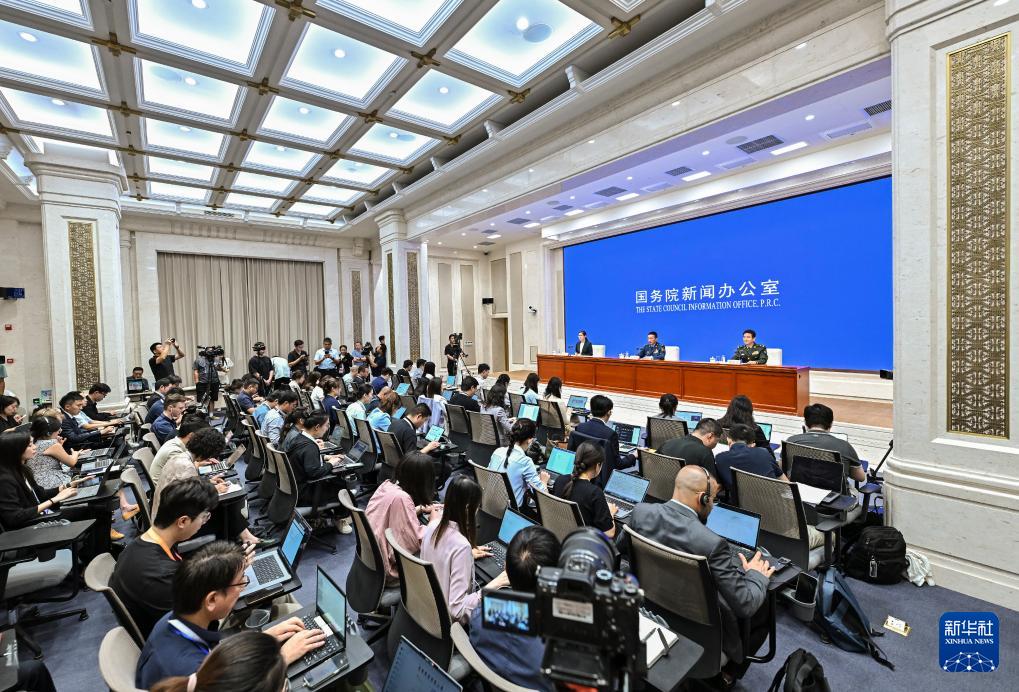 8月20日,國務院新聞辦公室在北京舉行新聞發布會,閱兵領導小組辦公室副主任、中央軍委聯合參謀部作戰局少將副局長吳澤棵,中國人民解放軍中部戰區閱兵指揮機構辦公室常務副主任、政治工作部少將副主任徐貴忠介紹閱兵準備工作有關情況,并答記者問。新華社記者 李鑫 攝