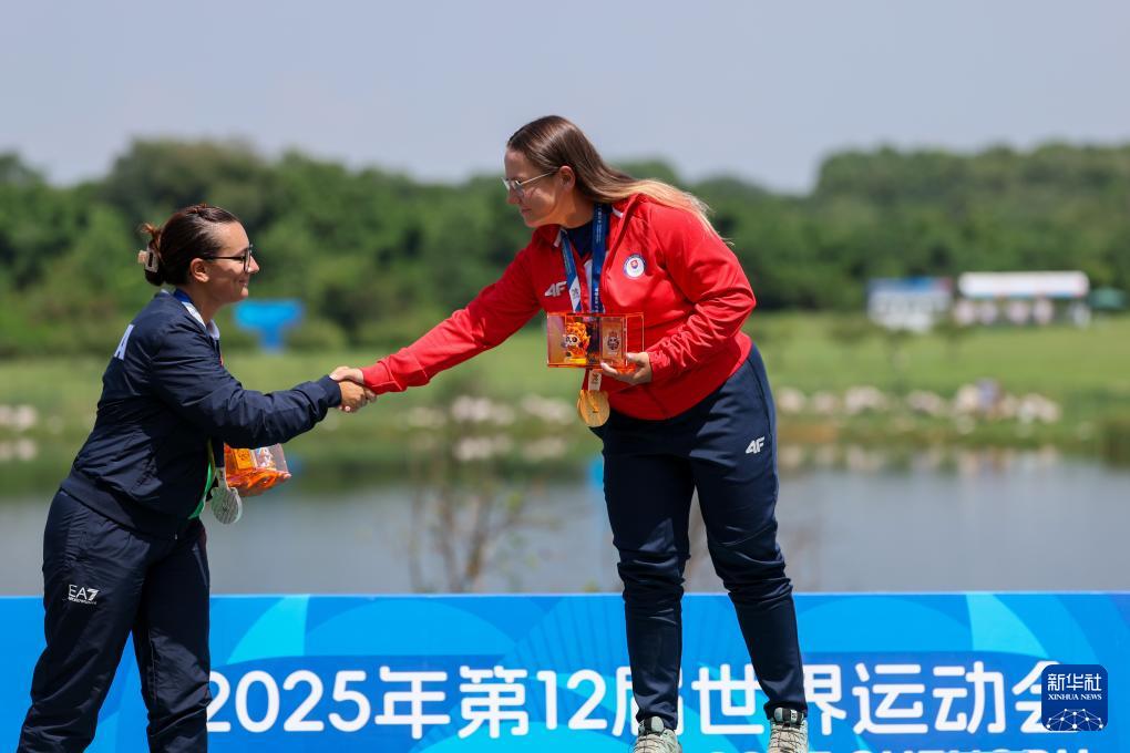 當日,2025年成都世運會射箭女子反曲弓決賽在青龍湖濕地公園舉行。最終斯洛伐克選手巴蘭科娃獲得冠軍,意大利選手雷巴利亞蒂和迪弗朗切斯科分獲亞軍和季軍。