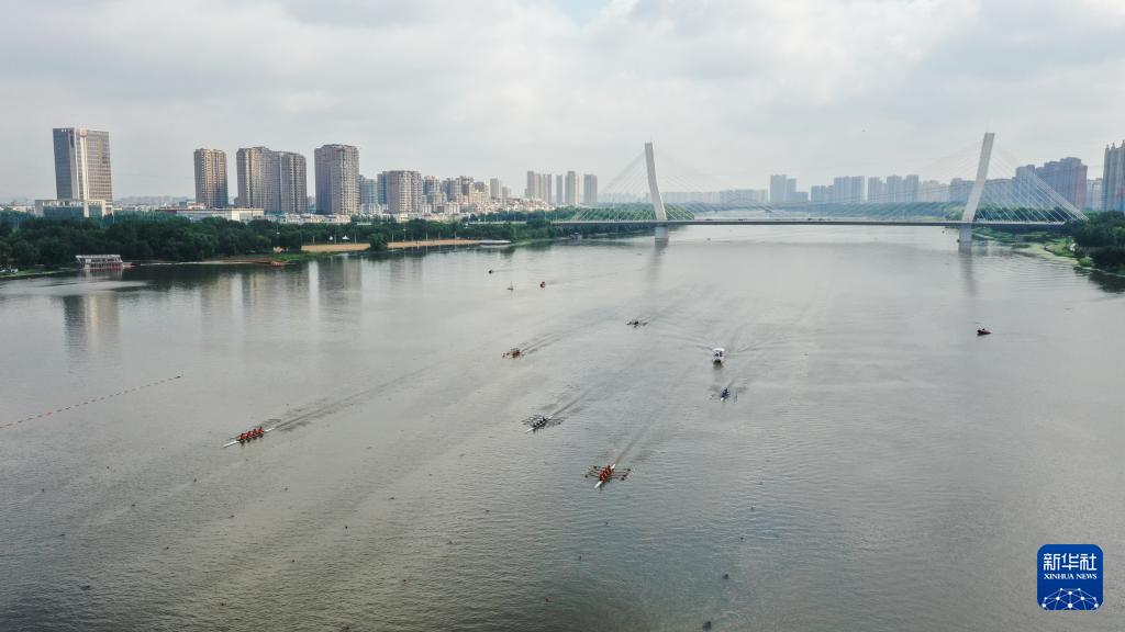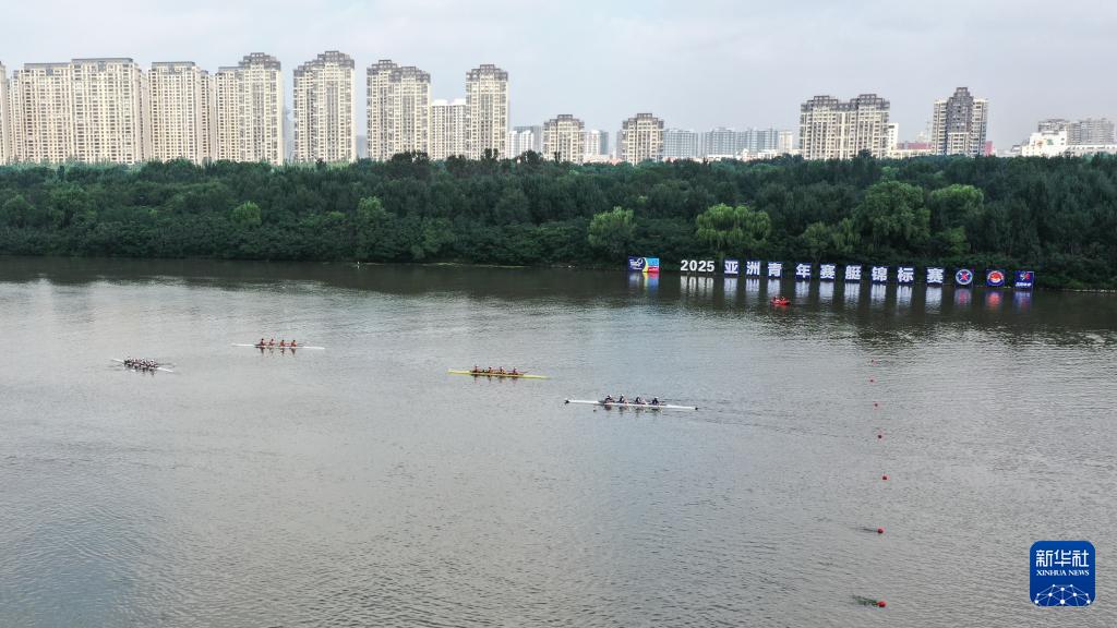 這是8月29日拍攝的2025年亞洲青年賽艇錦標賽比賽現場(無人機照片)。新華社記者 潘昱龍 攝