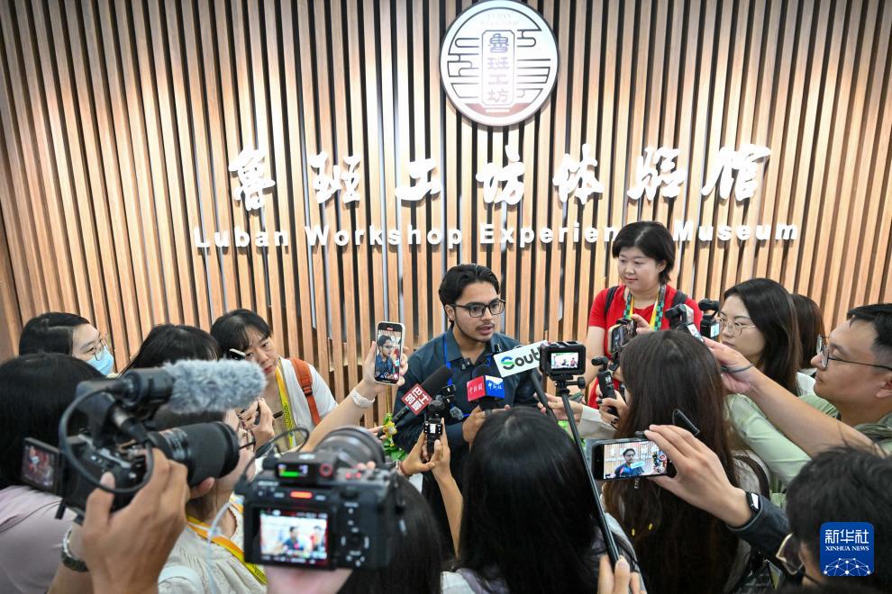 8月30日,媒體記者在天津輕工職業(yè)技術(shù)學(xué)院魯班工坊體驗館內(nèi)采訪巴基斯坦魯班工坊留學(xué)生。