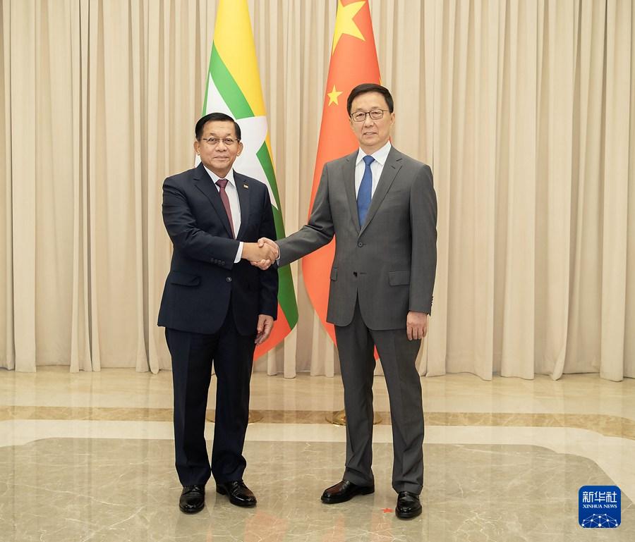 敏昂萊表示,緬中兩國山水相連,感謝中方在緬遭受地震災害后迅速提供援助。緬方支持習近平主席提出的全球治理倡議,愿同中方加強各領域合作,推進緬中命運共同體建設。