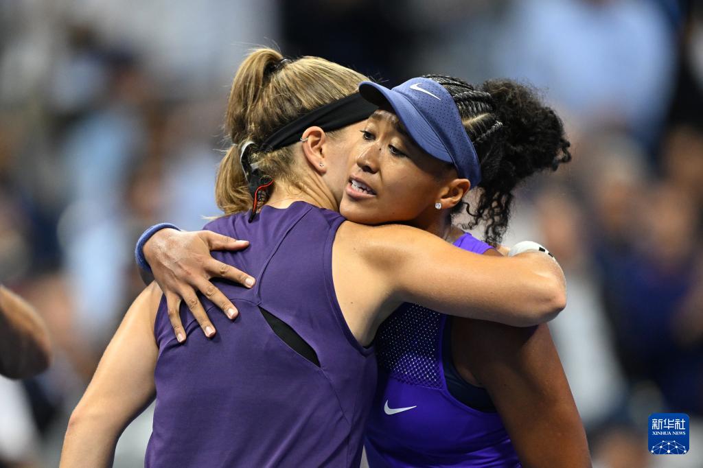 9月3日,大坂直美(右)和穆霍娃在賽后擁抱致意。