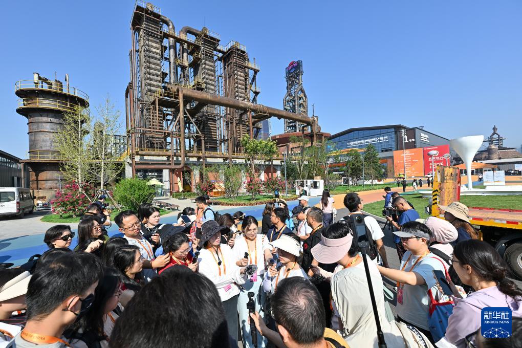 9月9日,一名媒體記者在首鋼園內拍攝。