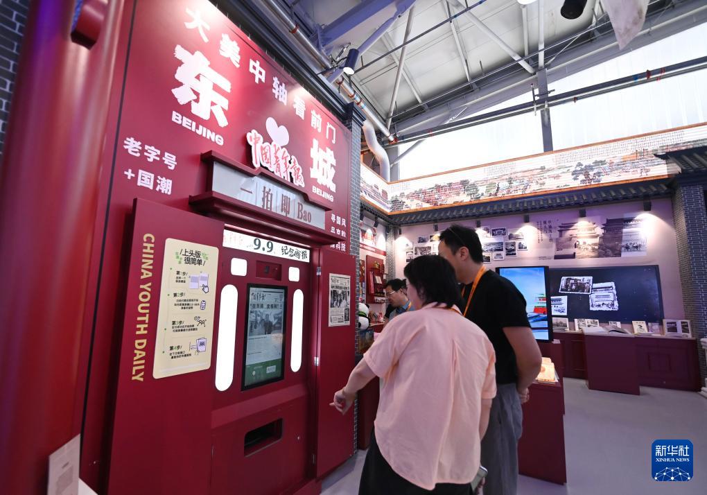 9月9日,參觀者在服貿會展廳的北京東城展位參觀。