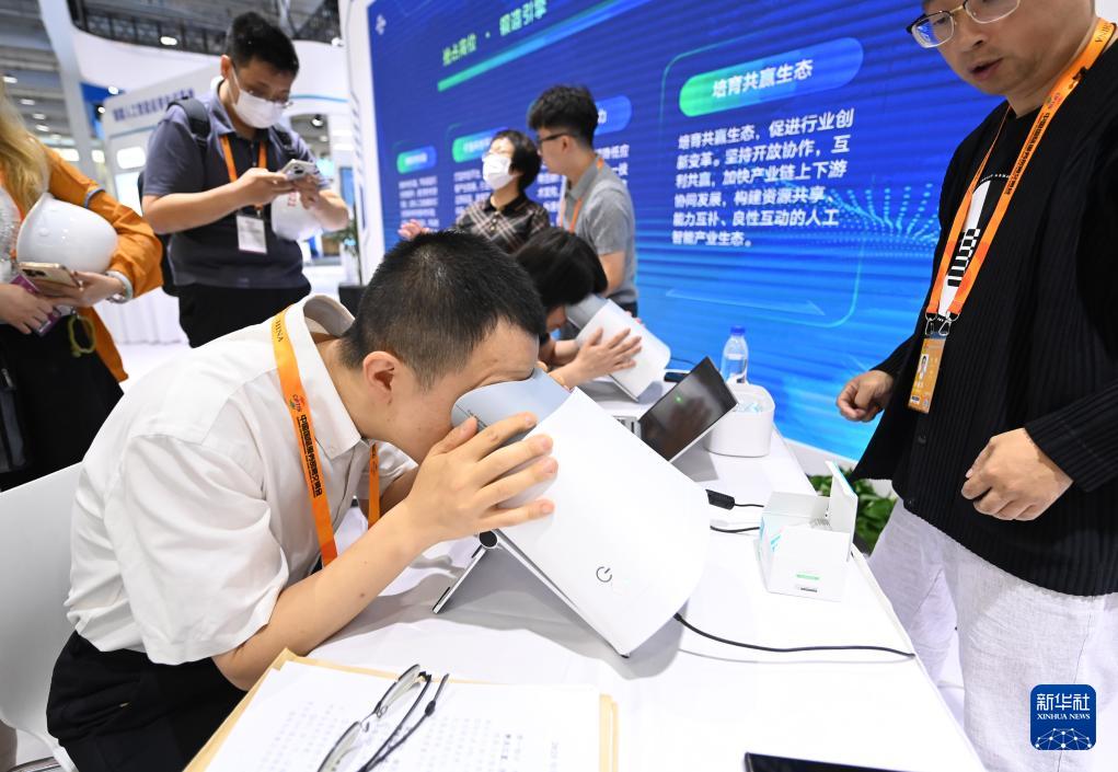 9月9日,參觀者在服貿會展廳體驗“AI眼底相機”。