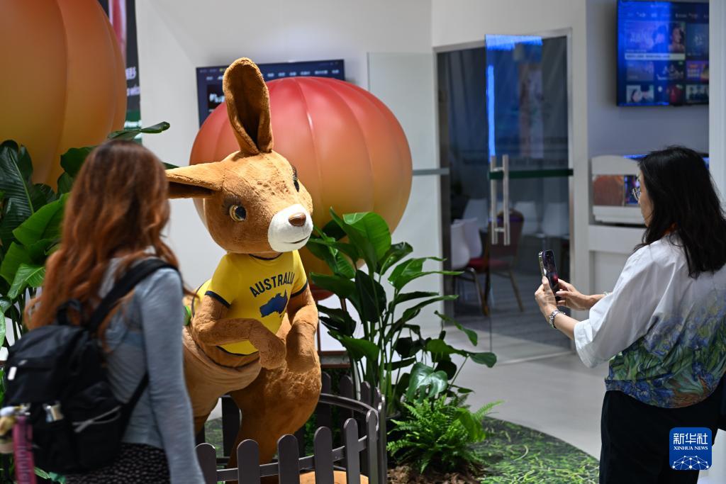 9月9日,一名女子拍攝本屆服貿會主賓國澳大利亞展臺上的袋鼠玩偶。