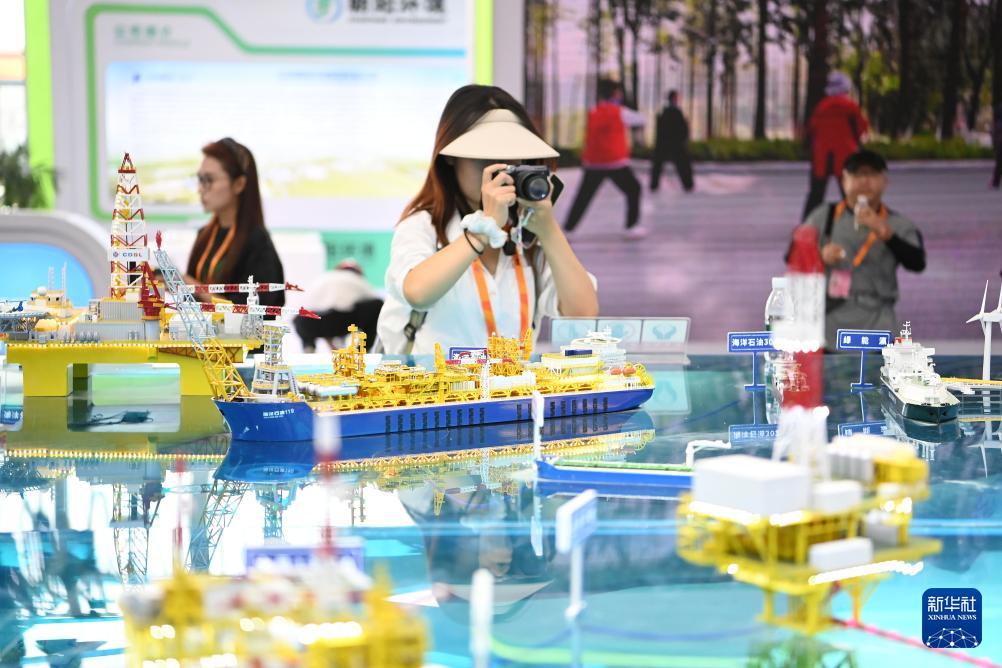 9月9日,參觀者在服貿會展廳的中國海油展臺參觀。