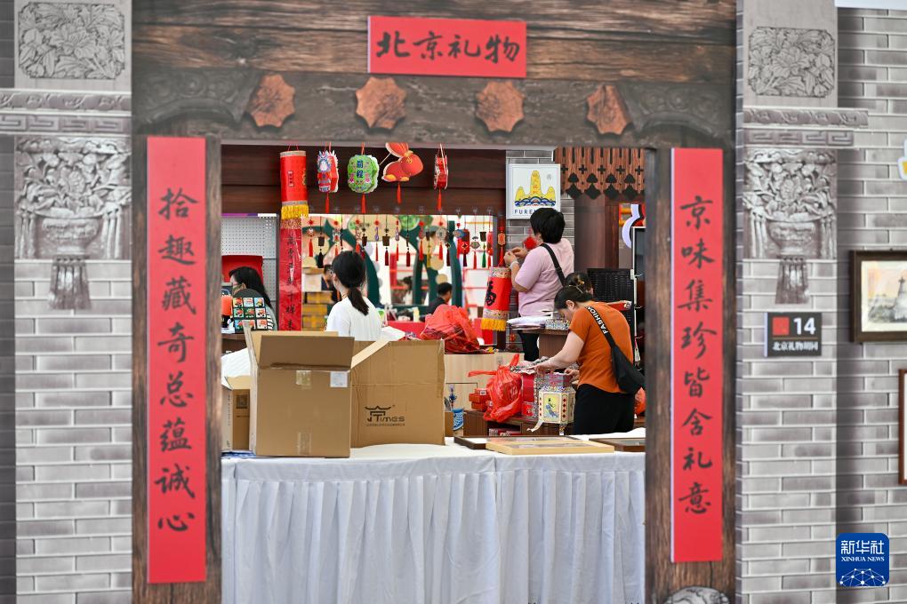 9月9日,參觀者在服貿會展廳的北京東城展位參觀文創產品。