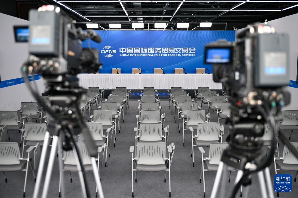 這是9月9日拍攝的本屆服貿會新聞中心的新聞發布廳。