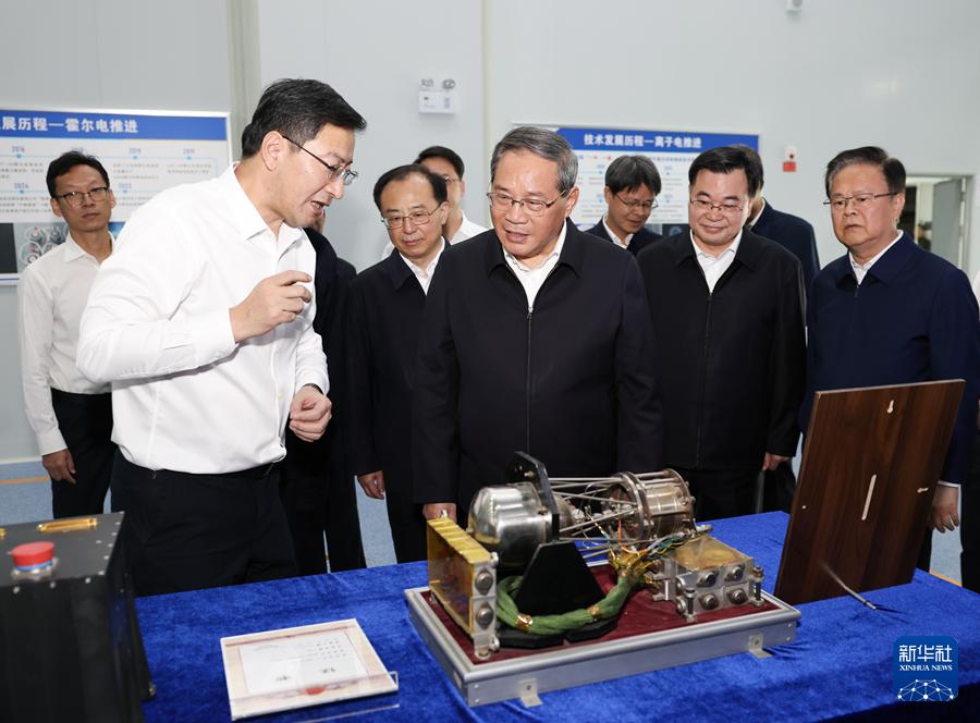 9月15日至16日,中共中央政治局常委、國務院總理李強在甘肅、青海調研。這是9月15日在甘肅蘭州,李強來到空間技術物理研究所航天高新產業園,觀看最新設備和零部件展示,詳細了解相關技術原理和產品產銷應用情況。新華社記者 黃敬文 攝