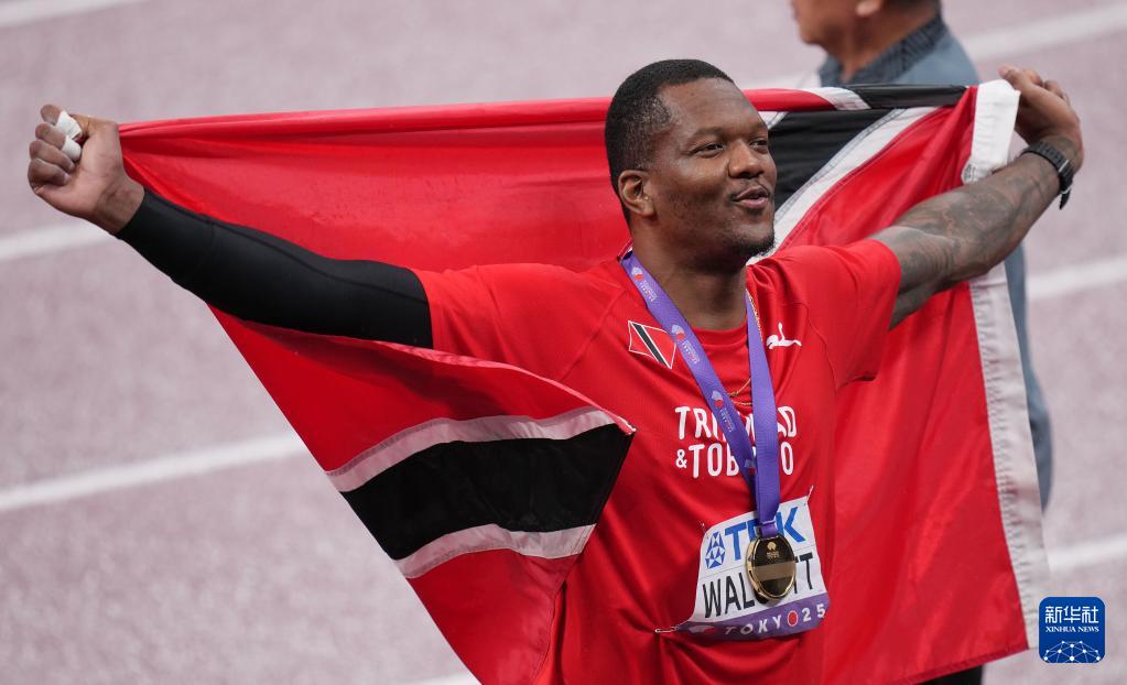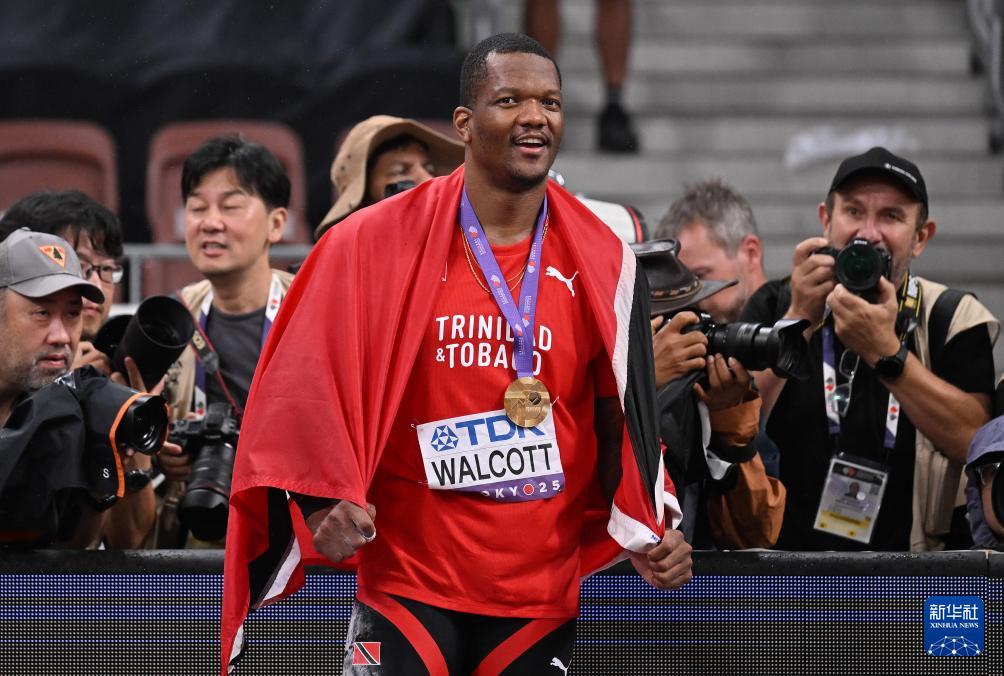 摘要:9月18日,冠軍特立尼達和多巴哥選手沃爾科特在比賽后慶祝。 當日,2025年世界田徑錦標賽男子標槍決賽在日本東京舉行。