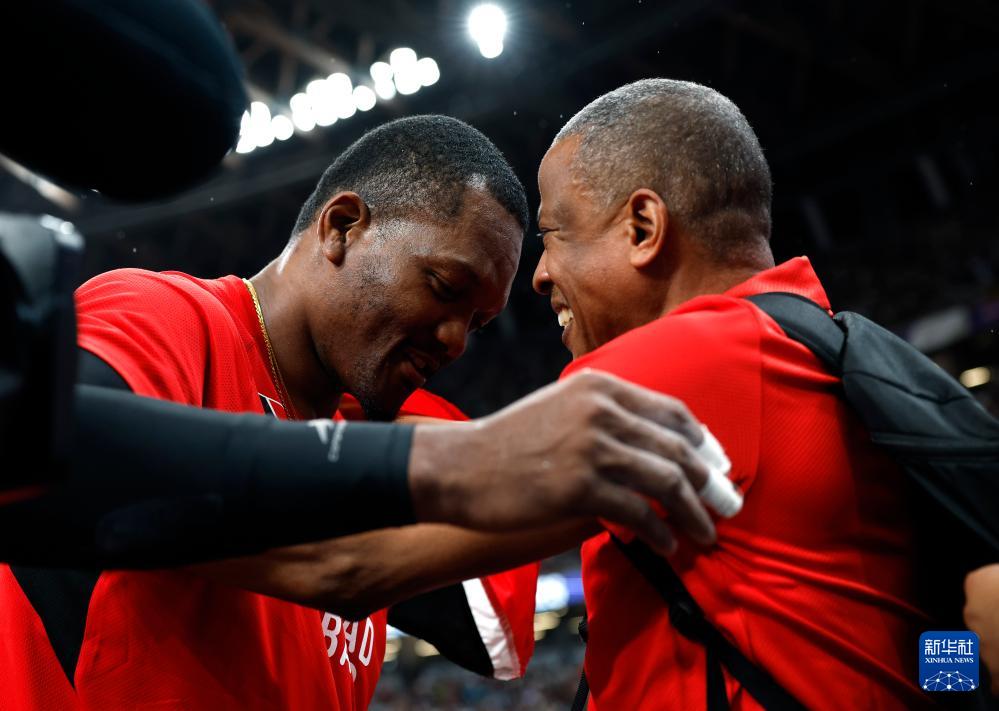 9月18日,冠軍特立尼達和多巴哥選手沃爾科特(左)在比賽后慶祝。
