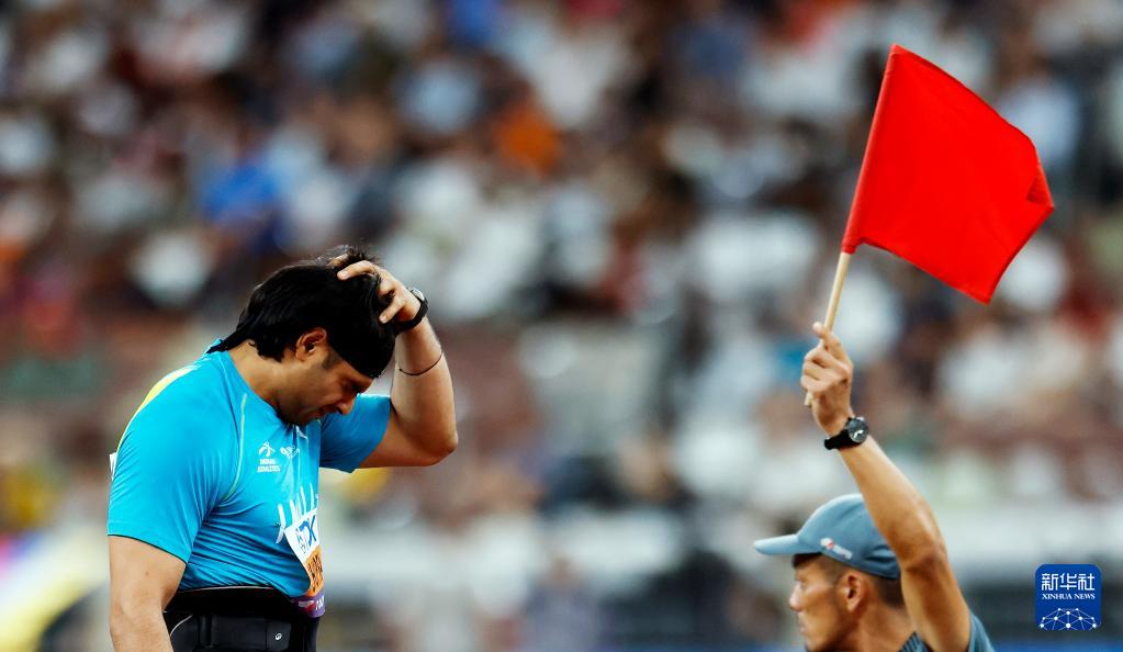 9月18日,印度選手喬普拉在比賽中試投失敗后。