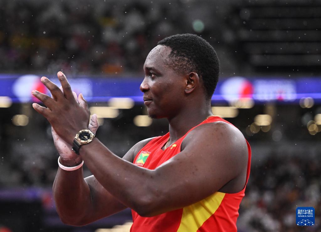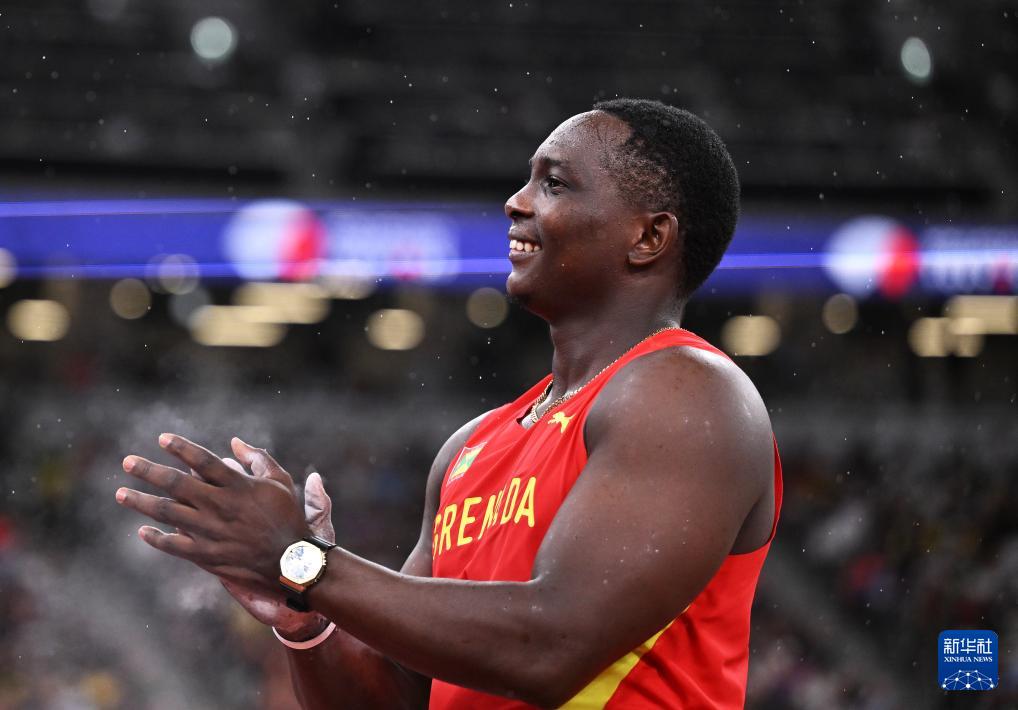9月18日,格林納達選手彼得斯在比試投后慶祝。最終,他獲得亞軍。