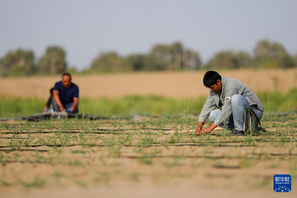 羅布麻具有耐旱、耐鹽堿、耐寒暑、抗風沙、生態適應能力強等特點。當地規劃羅布麻治沙技術區,采用種植羅布麻生物固沙和鋪設草方格工程治沙的模式,減緩沙漠流動速度,阻隔沙漠對綠洲的侵襲。同時,當地建設羅布麻產業園,推動羅布麻在紡織、保健品等產業應用,帶動當地1000余人就業增收。