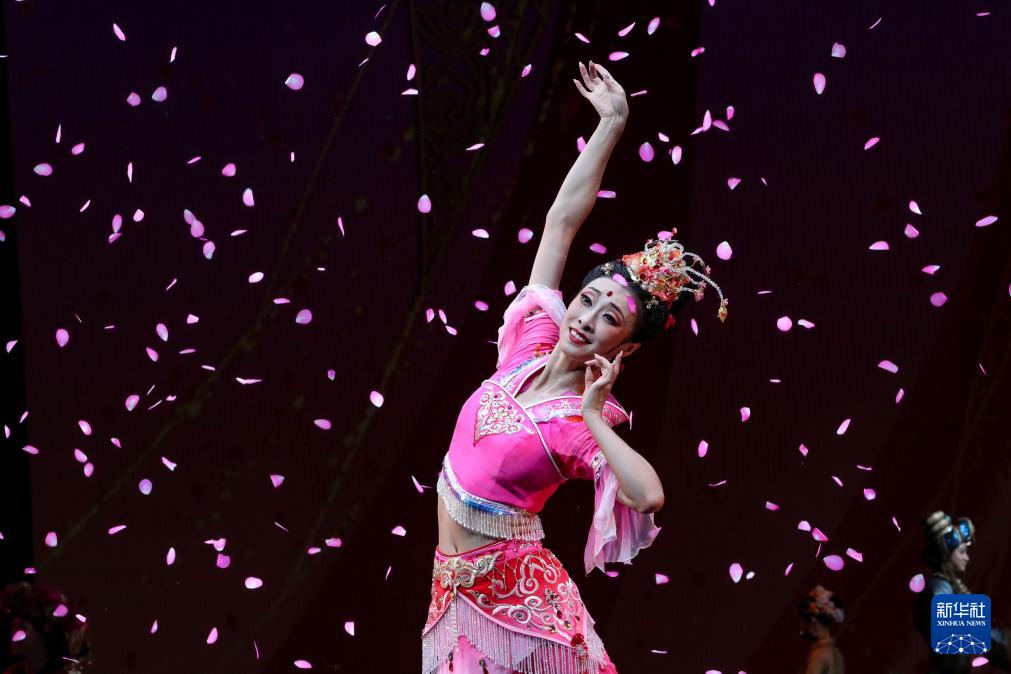 9月20日晚,演員在敦煌大劇院表演新版《絲路花雨》。