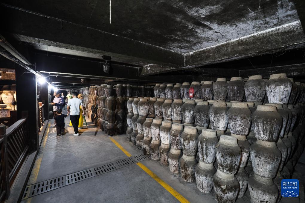 9月20日,游客在沈蕩鎮的中華老字號企業海鹽沈蕩釀造有限公司地下酒窖游覽。