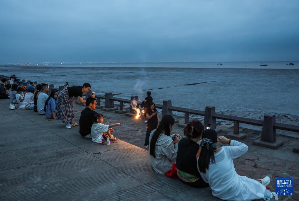 9月20日清晨,人們在海鹽的觀海園海塘邊等待觀看日出。
