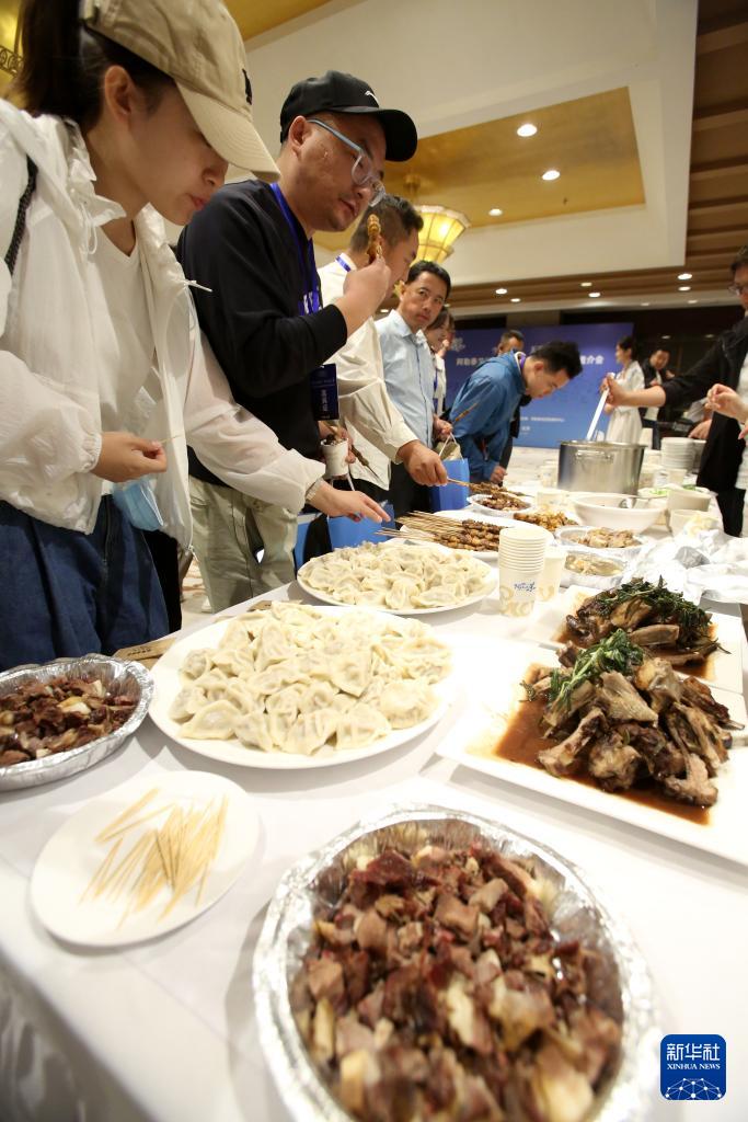 9月20日,人們在產品推介會上品嘗用阿勒泰羊制作的美食。