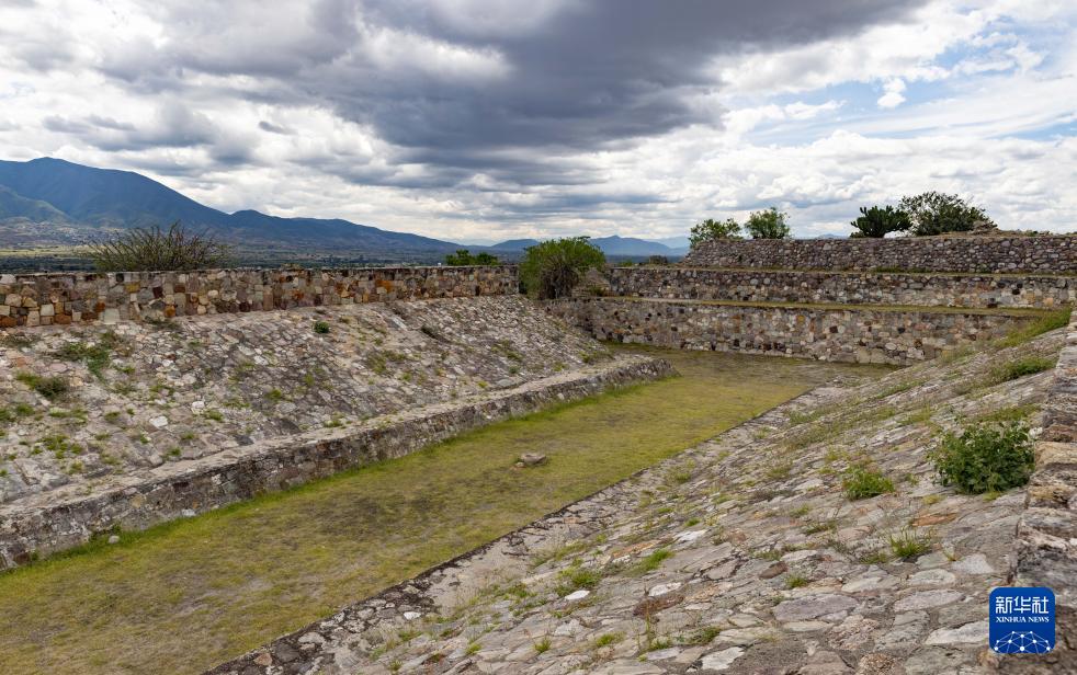 這是9月17日在墨西哥瓦哈卡州亞古爾遺址拍攝的球場遺跡。