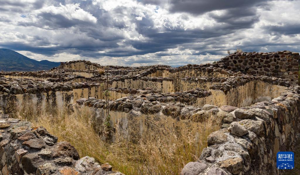 這是9月17日在墨西哥瓦哈卡州亞古爾遺址拍攝的宮殿遺跡。