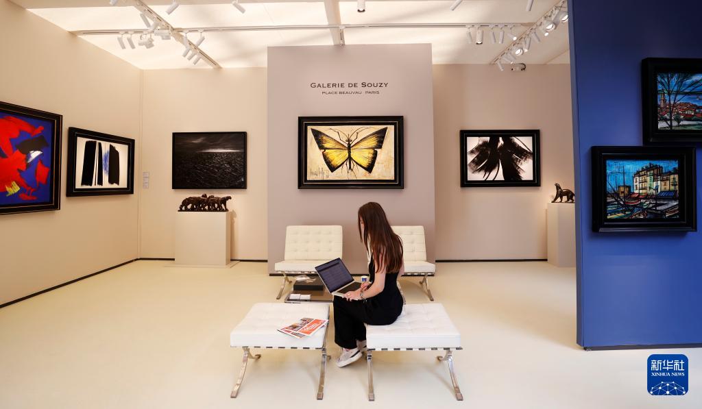 9月19日,在法國(guó)巴黎大皇宮,一名工作人員在第四屆巴黎FAB美術(shù)與古董藝博會(huì)(FAB Paris)媒體預(yù)展上。