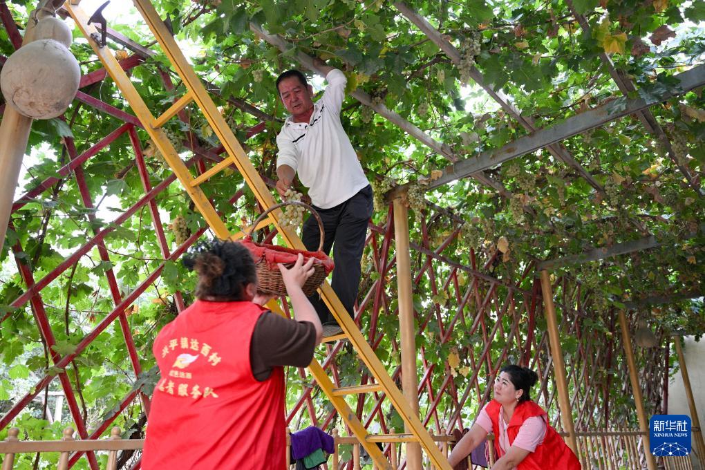 9月18日,達西村村干部入戶幫助村民采摘葡萄。近年來,達西村充分挖掘房前屋后閑置土地及荒廢地塊,逐步擴大特色林果種植面積,引導村民增收。