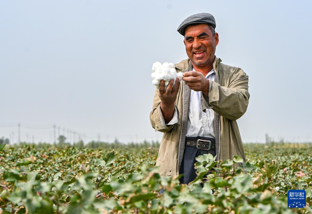 9月19日,尉犁縣達(dá)西村二組村民艾合買提·吐爾遜在棉田里查看棉花。